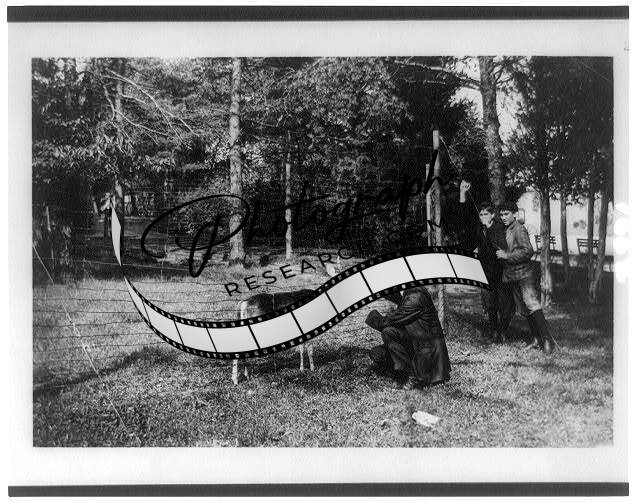 Man feeding a deer at the National Zoo,Washington,D.C.,1909-1932,boys,fence