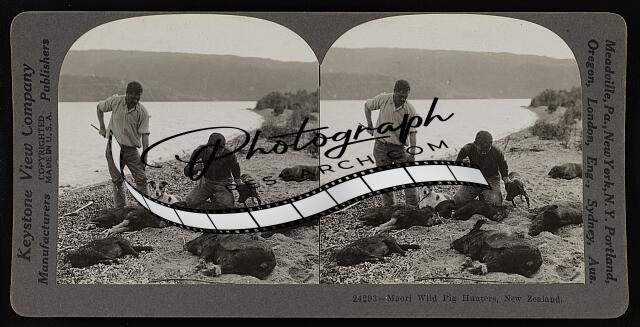 Maori wild pig hunters, New Zealand