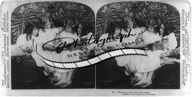 Photo of Stereograph,The Story that led to land,Girls Reading Book,Cat,c1901