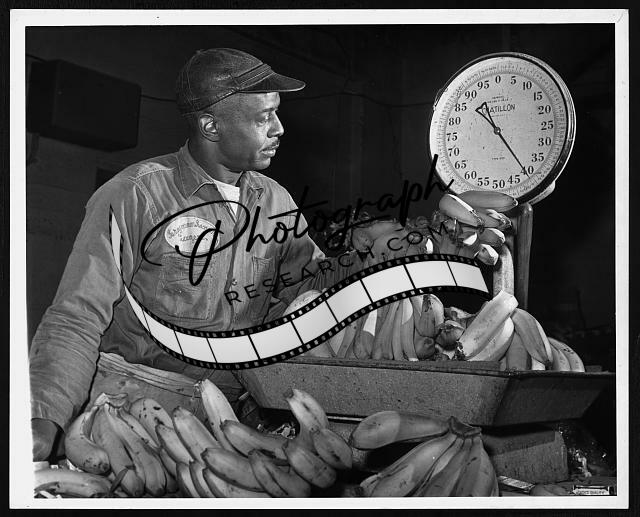 Eugene Smallwood,an employee at Curatolo Banana Corp. weighing bananas,1962