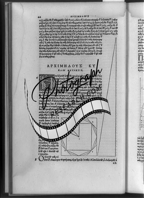 Page,mathematical essay,Greek,initial,mathematical drawing,math,Archimedes,1544