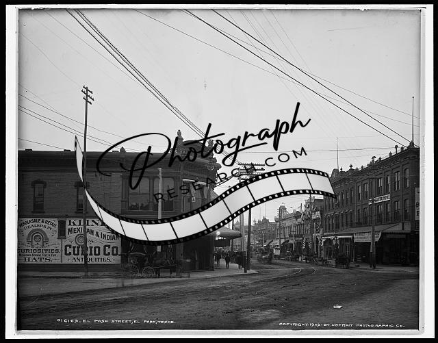 El Paso Street,buildings,Kline's Mexican,Indian,signs,hats,roads,Texas,TX,c1903