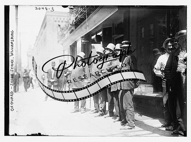 On guard,sugar strike,Williamsburg,men in uniform,Bain News Service