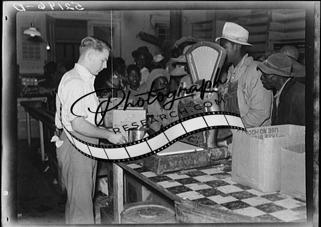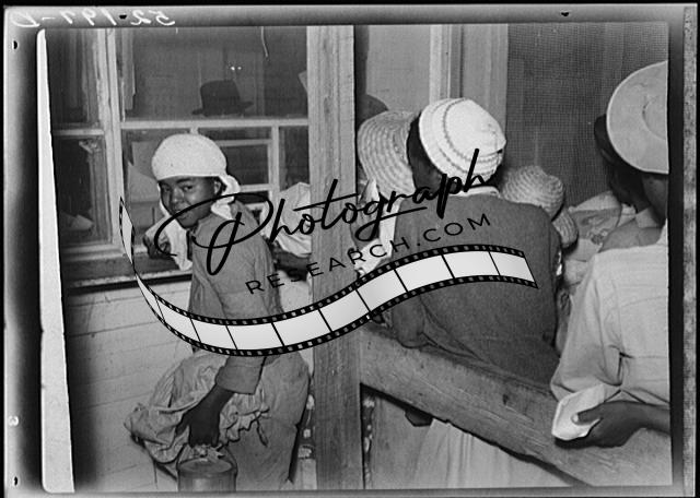 Title: Negro day laborers brought in truck from nearby towns, waiting to be paid off for cotton picking and buy supplies inside plantation store on Friday night. Marcella Plantation. Mississippi Delta. Mississippi