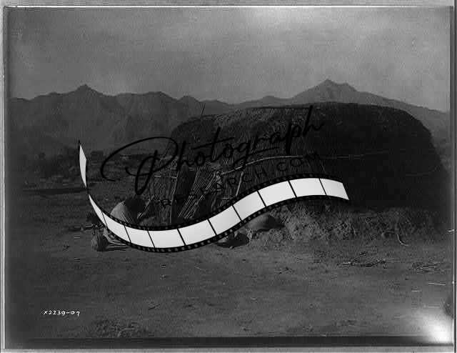 Pima Ki,September 14,c1907,Edward S. Curtis,Pima Indian,roundhouse,mountains