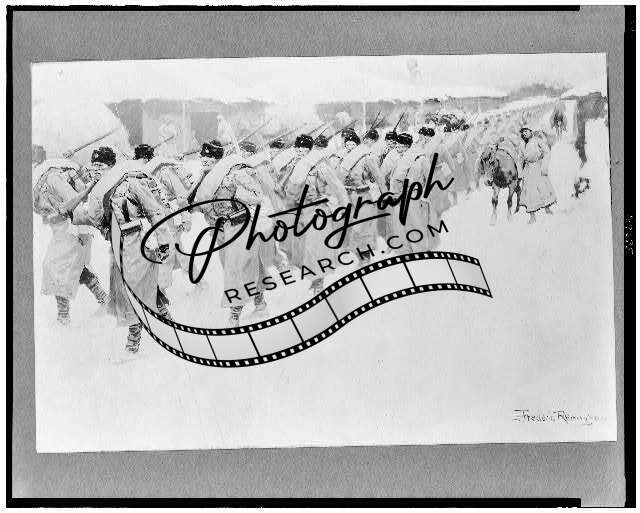Russian infantry,front,troop movement,snow,soldiers,uniforms,F Remington,c1904