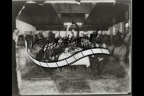Banquet,Horse barn,1902,Horse shoe,17 men,Horses,Stalls