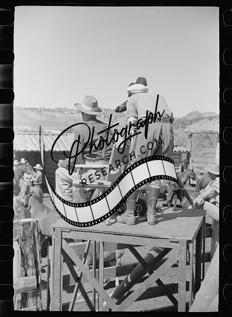 Branding a colt,Quarter Circle U roundup,Montana,MT,June 1939,Rothstein,FSA,1