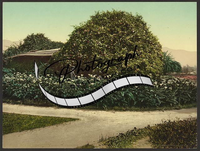 Gold of Ophir roses,garden,Carmelita,Pasadena,CA,c1898