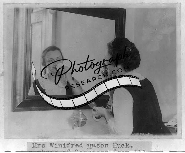 Winnifred (Mason) Huck,1882-1936,American journalist,powdering her nose,mirror