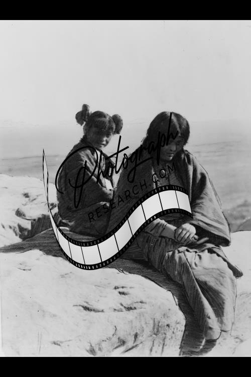 Maiden & Matron,Two Hopi females sitting on rock,c1905