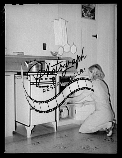 Title: Wife of member of the Arizona part-time farms. Chandler Unit, Maricopa County, Arizona, in the kitchen of her apartment on the project