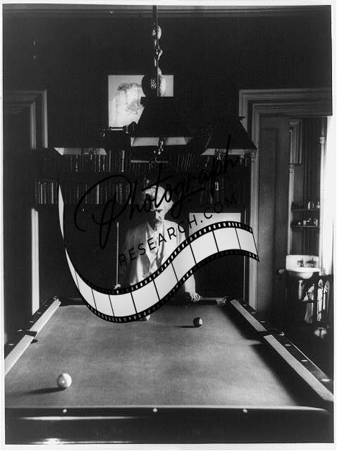 Mark Twain,holding cue stick,pool table,billiards,author,novels,Tom Sawyer,1870
