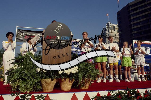 Title: Marilyn Quayle greets actors at Race for the Cure on Pennsylvania Avenue, Washington, D.C.