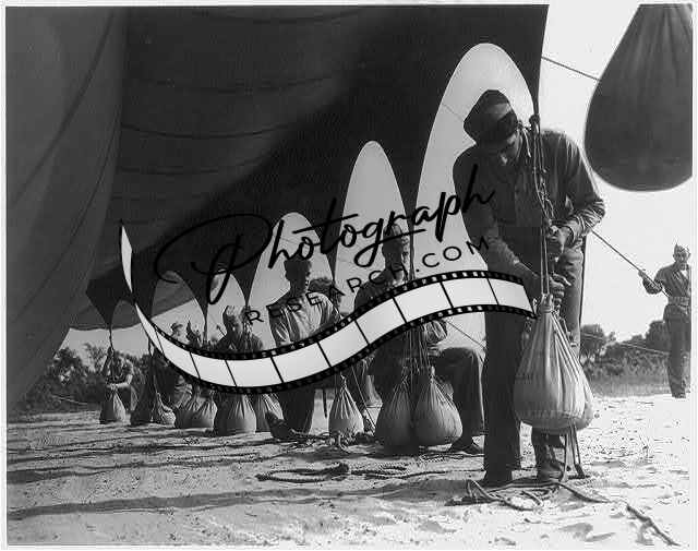 Marine Corps Barrage Balloons,Parris Island,South Carolina,SC,men holding ropes