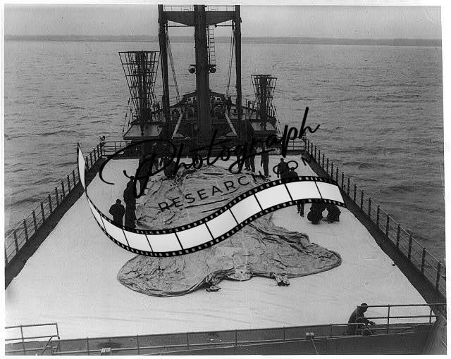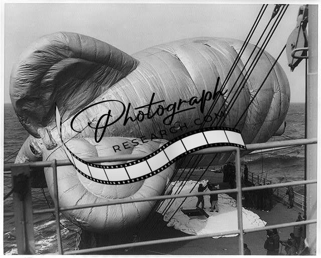 Captive balloon supports 'Voice of America' antenna,USCG cutter COURIER,1952