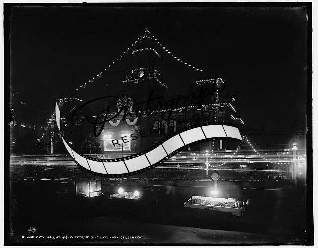 City Hall,night,Detroit Bi-Centenary Celebration,lighting,centennial,MI,1901