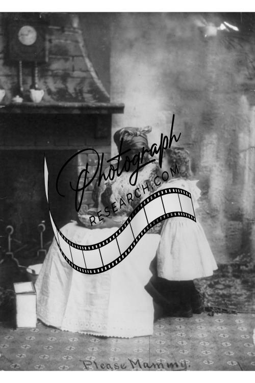 Please mammy,White girl asking African American woman,fireplace,c1899