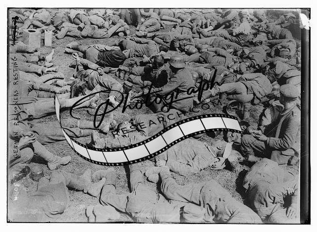 German prisoners resting,men sleeping on ground outside,Bain News Service