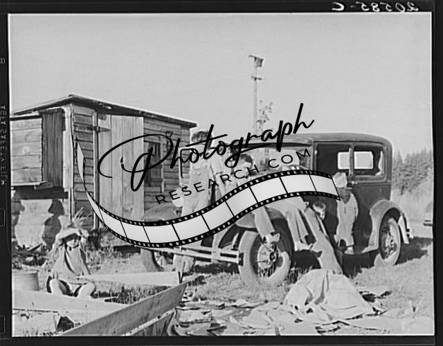 Title: Bean pickers' camp in grower's yard. No running water. Marion County, near West Stayton, Oregon. See general caption number 46