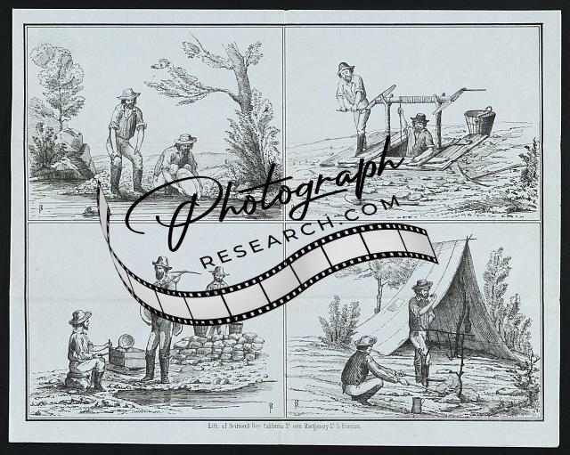 Miners Panning for Gold,Gold Rush,California,Mine Shaft,Miners Cooking,Camp,1850