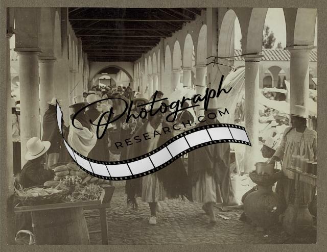 Market,Cochabamba,Bolivia,1920-1947,people walking,open-air building,vendors