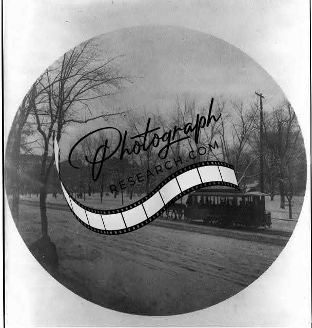 Horse-drawn trolley in snow,Circular Photo,Washington,D.C.,1888-1889,trees