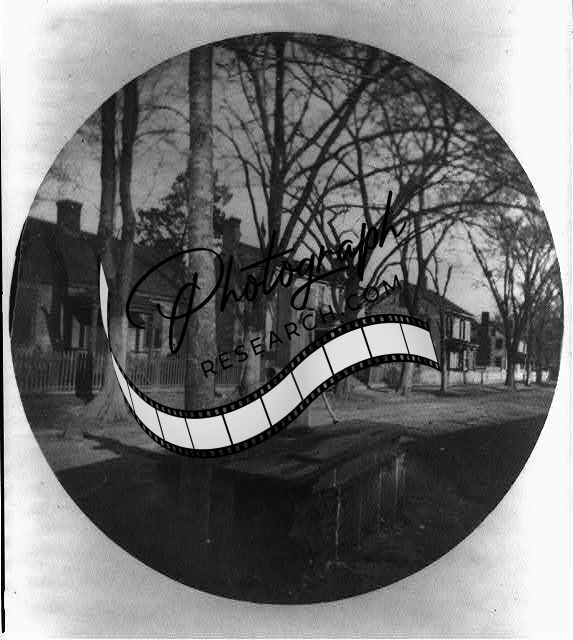 Wooden water pump on street,Circular Photo,Washington,D.C.,1888-1889,houses