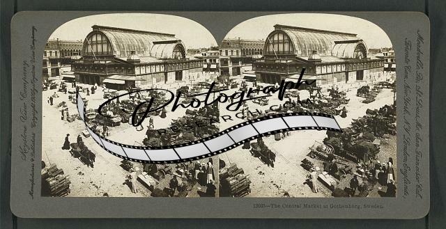 Photo of Stereograph,Central Market,Gothenburg,Sweden,Goteborg,c1906,Wagons