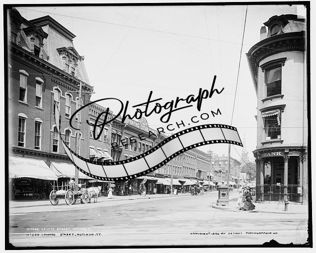 Center Street,commercial facilities,buildings,roads,Rutland,Vermont,VT,c1904