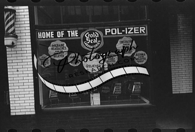 Shop window,Minneapolis,Minnesota,MN,Home of the Polizer,Barber Shop,1939,FSA