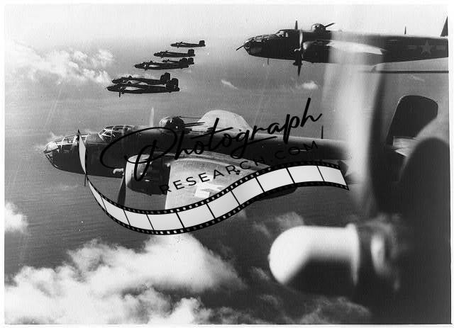 Formations of B-25s wing,rail target,Northern Italy,c1942,WWII,Mitchell Bomber