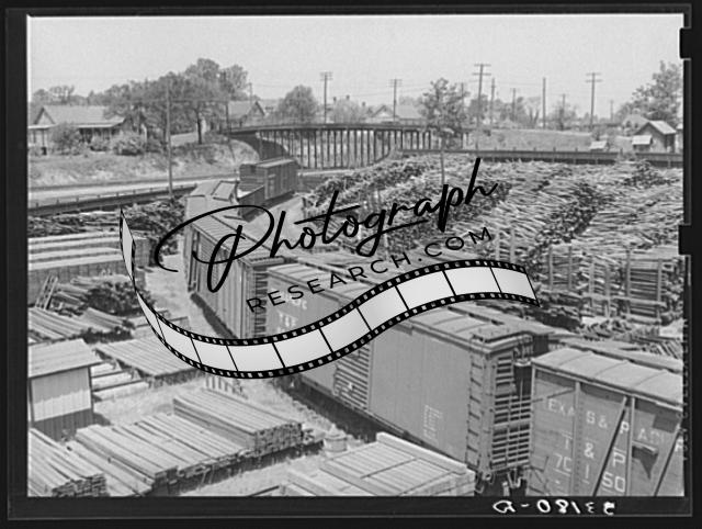 Title: Stacks of wood in railroad yard. Marshall, Texas