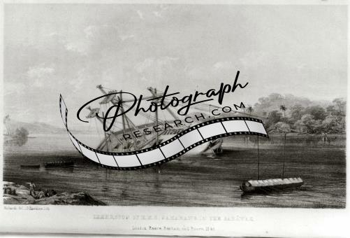 Immersion of H.M.S. SAMARANG in the Sarawak River,W. Borneo,1848,ship