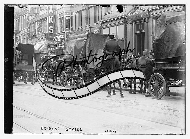 Express Strike,horse-drawn wagons,store fronts,Bain News Service