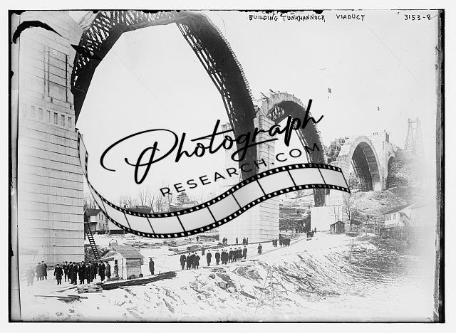 Building Tunkhannock Viaduct,railroad tracks,1910-1915,arches,construction 1
