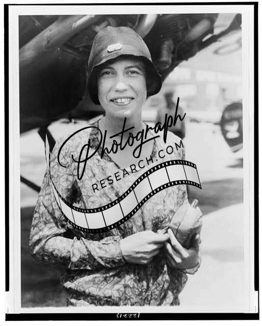 Title: [Marvel Crosson, full-length portrait, seated on top of airplane]