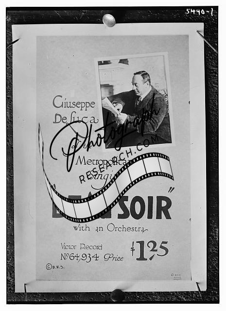 Victor Record Poster,Giuseppe De Luca sings,advertisements,$1.25,Beau Soir,men