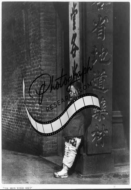Photo of The drug store sign,Chinese boy,Chinatown,San Francisco,California