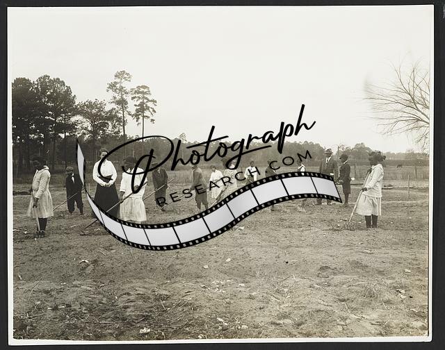African American children working,pitchforks,hoes,teachers watch,gardening,1910