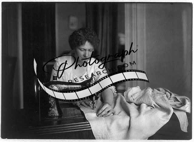 Woman sewing with a Singer sewing machine,c1917,Women's war work,World War