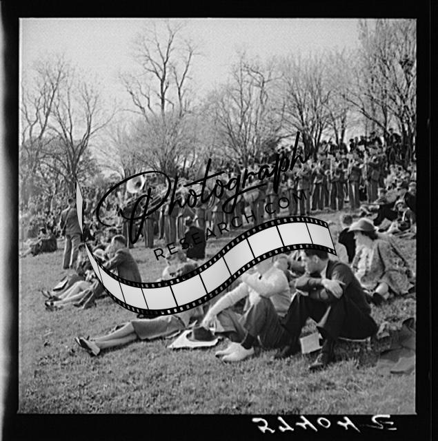 Title: Spectators picnicking before the Point to Point Cup race of the Maryland Hunt Club. Worthington Valley, near Glyndon, Maryland