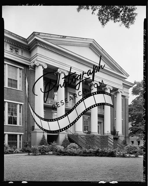 State School for Deaf & Blind since 1860. Six large Corinthian columns, narrow balcony with iron railing.
