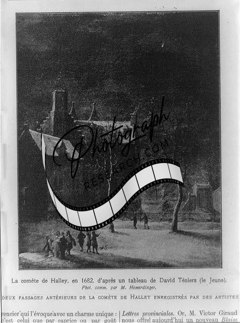 La comète de Halley,en 1682,Halley's Comet in 1862,People in yard,buildings