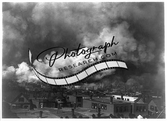 Billowing smoke,Sailships,Seattle,WA?,c1908,Buildings