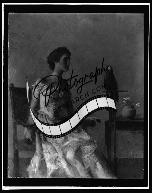 Lady sitting,chair,parrot,birds,women,Thomas W Dewing,Detroit Publishing,1900