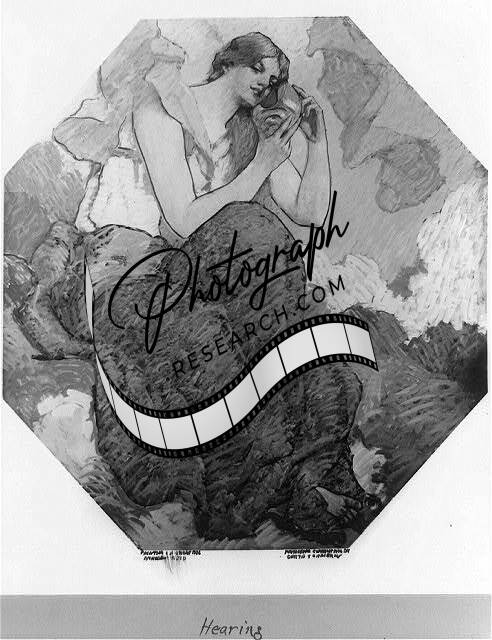 Summary: Reproduction of a mural in the Library of Congress Jefferson Building showing woman looking at scroll with geometric figures.