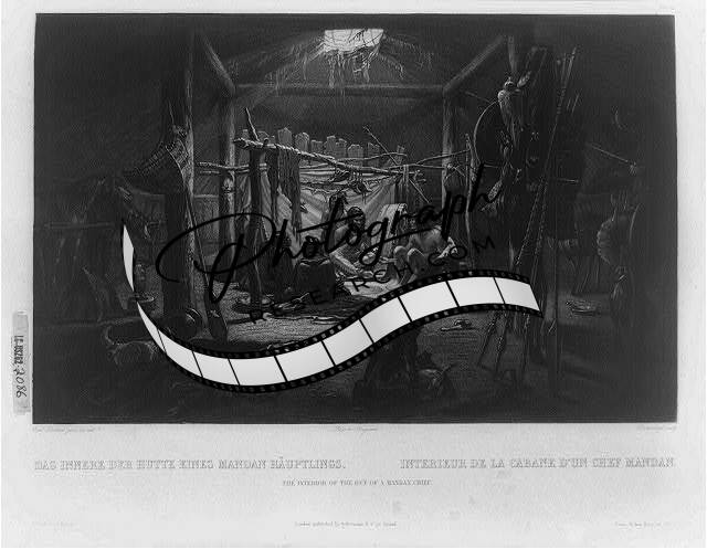 The interior of the hut of a Mandan chief,Native Americans,North Dakota,men