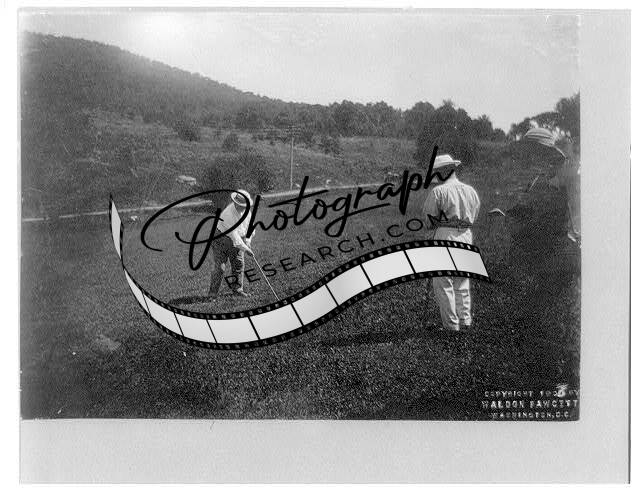 President William Howard Taft putting on the golf course,c1908,caddy,caddie