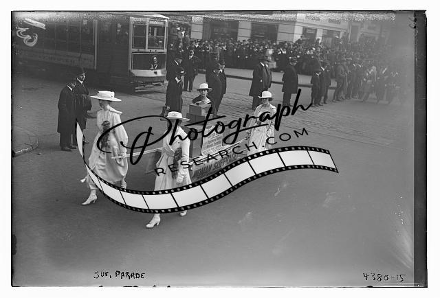 Suffragette parade,women,trolley car,people,Bain News Service,women suffrage